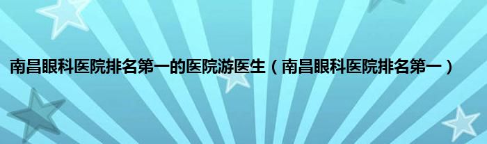 南昌眼科医院排名第一的医院游医生(南昌眼科医院排名第一)