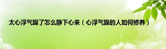以上就是【太心浮气躁了怎么静下心来,心浮气躁的人如何修养】相关内容。