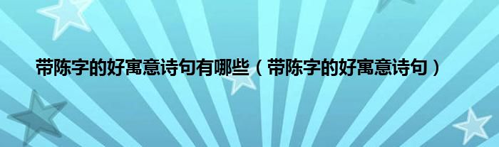 以上就是【带陈字的好寓意诗句有哪些,带陈字的好寓意诗句】相关内容。