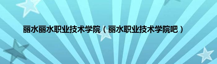 以上就是【丽水丽水职业技术学院,丽水职业技术学院吧】相关内容。