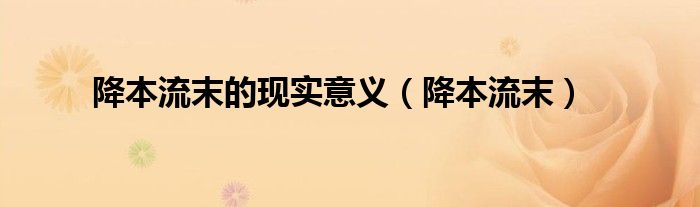 大家好,小问来为大家解答以上问题。降本流末的现实意义,降本流末这个很多人还不知道,现在让我们一起来看看吧!