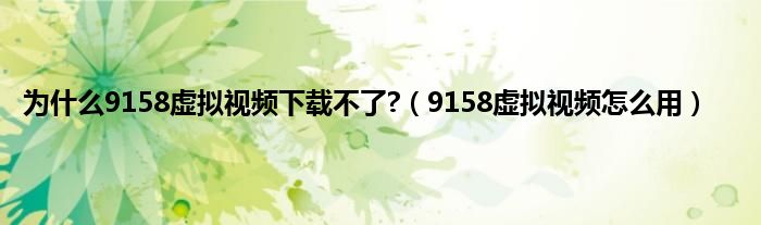 大家好,小问来为大家解答以上问题。为什么9158虚拟视频下载不了?,9158虚拟视频怎么用这个很多人还不知道,现在让我们一起来看看吧!