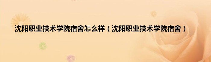 沈阳职业技术学院宿舍怎么样(沈阳职业技术学院宿舍)