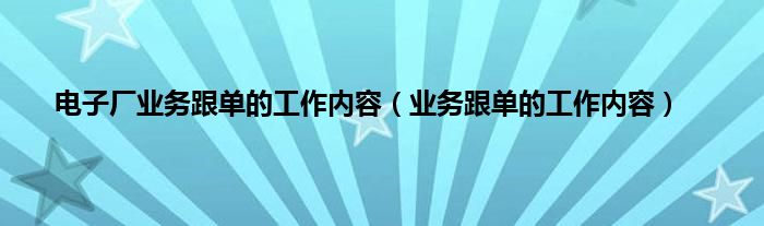 大家好,小问来为大家解答以上问题。电子厂业务跟单的工作内容,业务跟单的工作内容这个很多人还不知道,现在让我们一起来看看吧!