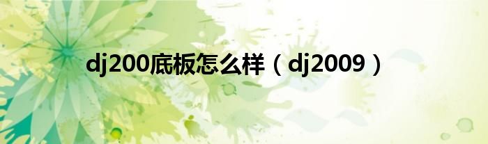 大家好,小问来为大家解答以上问题。dj200底板怎么样,dj2009这个很多人还不知道,现在让我们一起来看看吧!
