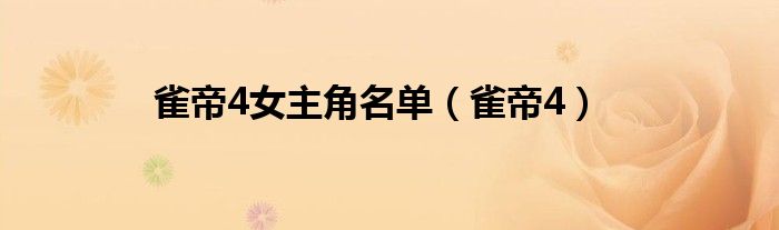 大家好,小问来为大家解答以上问题。雀帝4女主角名单,雀帝4这个很多人还不知道,现在让我们一起来看看吧!