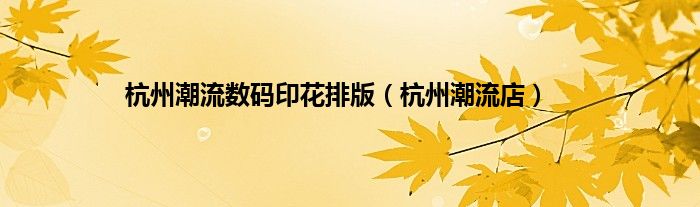 大家好,小问来为大家解答以上问题。杭州潮流数码印花排版,杭州潮流店这个很多人还不知道,现在让我们一起来看看吧!