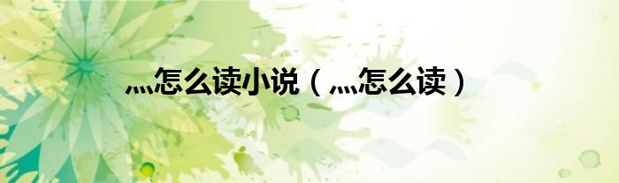 以上就是【灬怎么读小说,灬怎么读】相关内容。