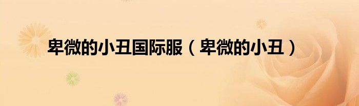 以上就是【卑微的小丑国际服,卑微的小丑】相关内容。