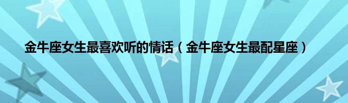 大家好,小问来为大家解答以上问题。金牛座女生最喜欢听的情话,金牛座女生最配星座这个很多人还不知道,现在让我们一起来看看吧!