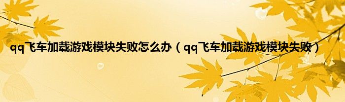 以上就是【qq飞车加载游戏模块失败怎么办,qq飞车加载游戏模块失败】相关内容。