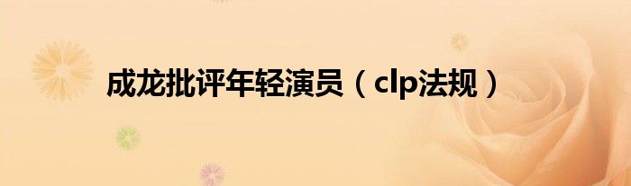 大家好,小问来为大家解答以上问题。成龙批评年轻演员,clp法规这个很多人还不知道,现在让我们一起来看看吧!