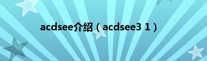 大家好,小问来为大家解答以上问题。acdsee介绍,acdsee3 1这个很多人还不知道,现在让我们一起来看看吧!
