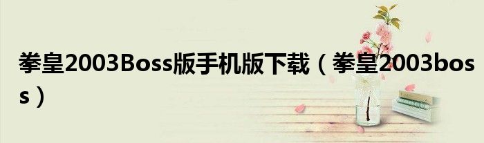 大家好,小问来为大家解答以上问题。拳皇2003Boss版手机版下载,拳皇2003boss这个很多人还不知道,现在让我们一起来看看吧!