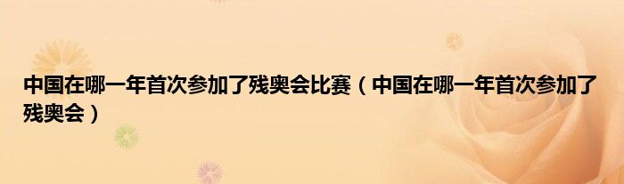 以上就是【中国在哪一年首次参加了残奥会比赛,中国在哪一年首次参加了残奥会】相关内容。