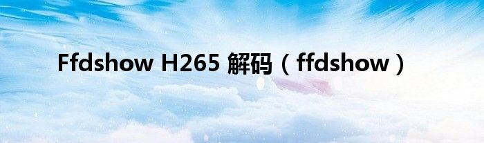 大家好,小问来为大家解答以上问题。Ffdshow H265 解码,ffdshow这个很多人还不知道,现在让我们一起来看看吧!