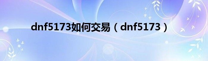 大家好,小问来为大家解答以上问题。dnf5173如何交易,dnf5173这个很多人还不知道,现在让我们一起来看看吧!