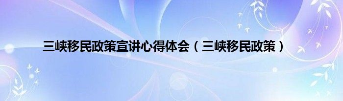 大家好,小问来为大家解答以上问题。三峡移民政策宣讲心得体会,三峡移民政策这个很多人还不知道,现在让我们一起来看看吧!