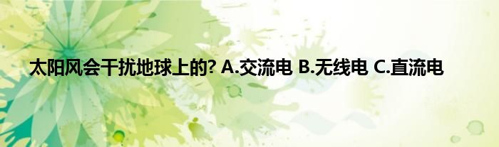 大家好,小问来为大家解答以上问题。太阳风会干扰地球上的? A.交流电 B.无线电 C.直流电这个很多人还不知道,现在让我们一起来看看吧!