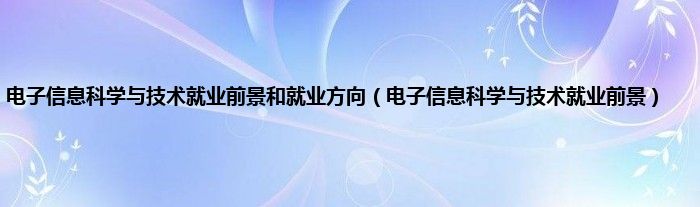 以上就是【电子信息科学与技术就业前景和就业方向,电子信息科学与技术就业前景】相关内容。