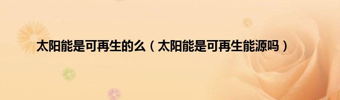 以上就是【太阳能是可再生的么,太阳能是可再生能源吗】相关内容。