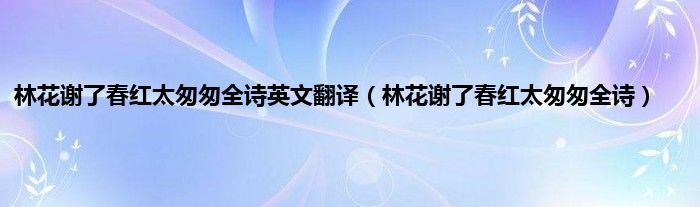 大家好,小问来为大家解答以上问题。林花谢了春红太匆匆全诗英文翻译,林花谢了春红太匆匆全诗这个很多人还不知道,现在让我们一起来看看吧!