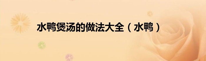 大家好,小问来为大家解答以上问题。水鸭煲汤的做法大全,水鸭这个很多人还不知道,现在让我们一起来看看吧!