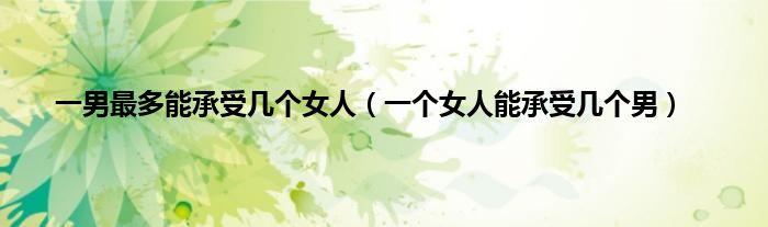 以上就是【一男最多能承受几个女人,一个女人能承受几个男】相关内容。