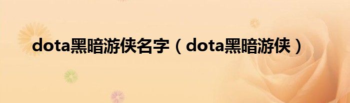 dota黑暗游侠名字(dota黑暗游侠)