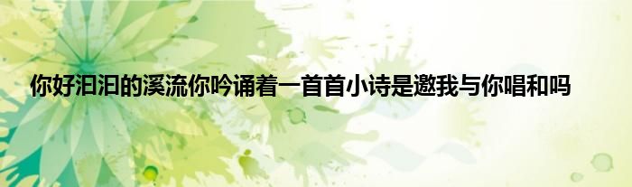 大家好,小问来为大家解答以上问题。你好汩汩的溪流你吟诵着一首首小诗是邀我与你唱和吗这个很多人还不知道,现在让我们一起来看看吧!