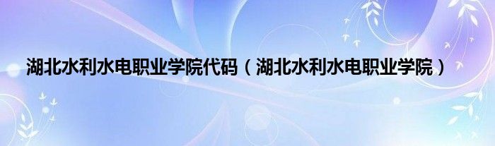 大家好,小问来为大家解答以上问题。湖北水利水电职业学院代码,湖北水利水电职业学院这个很多人还不知道,现在让我们一起来看看吧!