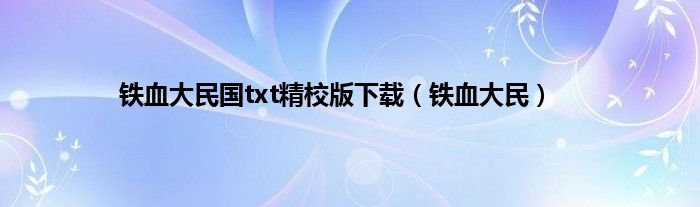 大家好,小问来为大家解答以上问题。铁血大民国txt精校版下载,铁血大民这个很多人还不知道,现在让我们一起来看看吧!