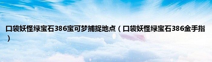 大家好,小问来为大家解答以上问题。口袋妖怪绿宝石386宝可梦捕捉地点,口袋妖怪绿宝石386金手指这个很多人还不知道,现在让我们一起来看看吧!