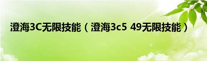 大家好,小问来为大家解答以上问题。澄海3C无限技能,澄海3c5 49无限技能这个很多人还不知道,现在让我们一起来看看吧!