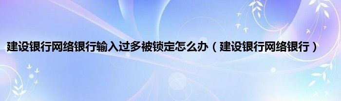 建设银行网络银行输入过多被锁定怎么办(建设银行网络银行)