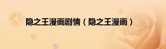 大家好,小问来为大家解答以上问题。隐之王漫画剧情,隐之王漫画这个很多人还不知道,现在让我们一起来看看吧!
