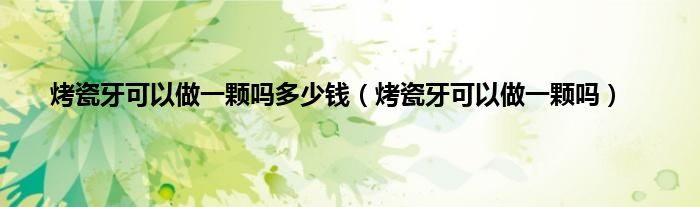 本文,烤瓷牙可以做一颗吗多少钱,烤瓷牙可以做一颗吗到此就分享完毕,希望对大家有所帮助。