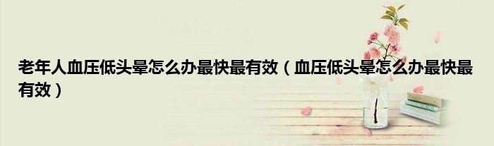 本文,老年人血压低头晕怎么办最快最有效,血压低头晕怎么办最快最有效到此就分享完毕,希望对大家有所帮助。