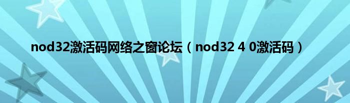 nod32激活码网络之窗论坛(nod32 4 0激活码)