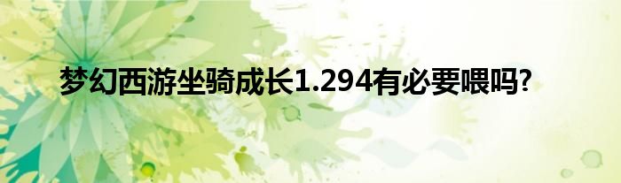 以上就是【梦幻西游坐骑成长1.294有必要喂吗?】相关内容。