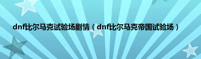 dnf比尔马克试验场剧情(dnf比尔马克帝国试验场)
