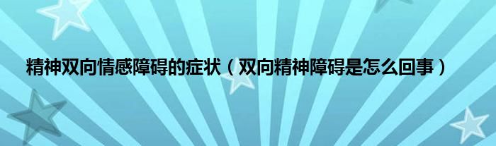本文,精神双向情感障碍的症状,双向精神障碍是怎么回事到此就分享完毕,希望对大家有所帮助。