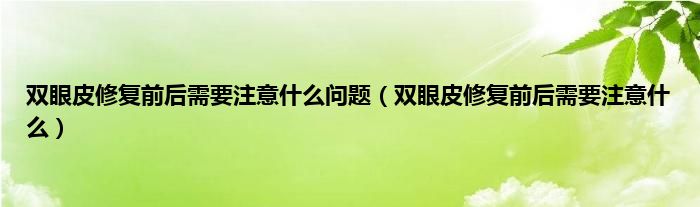 大家好,双眼皮修复前后需要注意什么问题,双眼皮修复前后需要注意什么很多人还不知道,现在让我们一起来看看吧!