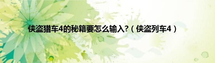 大家好,小问来为大家解答以上问题。侠盗猎车4的秘籍要怎么输入?,侠盗列车4这个很多人还不知道,现在让我们一起来看看吧!