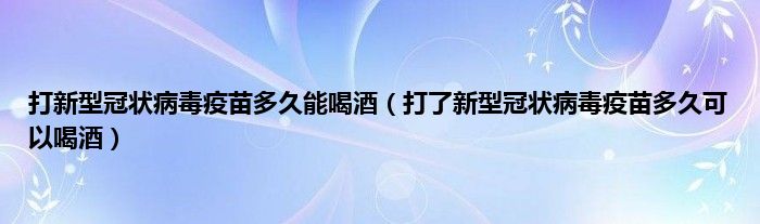 大家好,打新型冠状病毒疫苗多久能喝酒,打了新型冠状病毒疫苗多久可以喝酒很多人还不知道,现在让我们一起来看看吧!