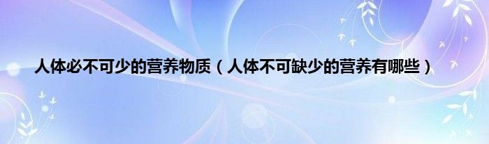 本文,人体必不可少的营养物质,人体不可缺少的营养有哪些到此就分享完毕,希望对大家有所帮助。