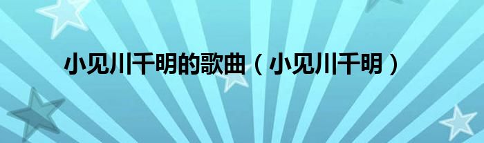 大家好,小问来为大家解答以上问题。小见川千明的歌曲,小见川千明这个很多人还不知道,现在让我们一起来看看吧!