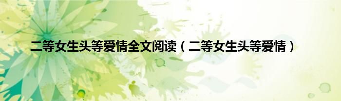 大家好,小问来为大家解答以上问题。二等女生头等爱情全文阅读,二等女生头等爱情这个很多人还不知道,现在让我们一起来看看吧!