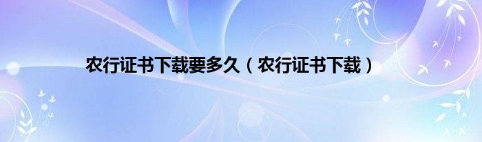 以上就是【农行证书下载要多久,农行证书下载】相关内容。