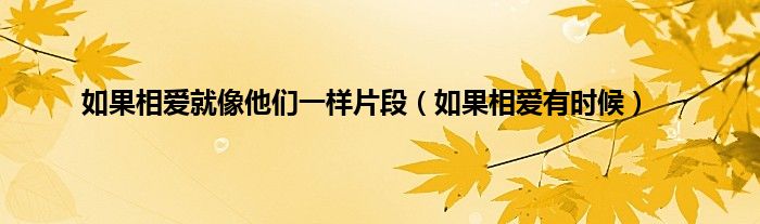 大家好,小问来为大家解答以上问题。如果相爱就像他们一样片段,如果相爱有时候这个很多人还不知道,现在让我们一起来看看吧!